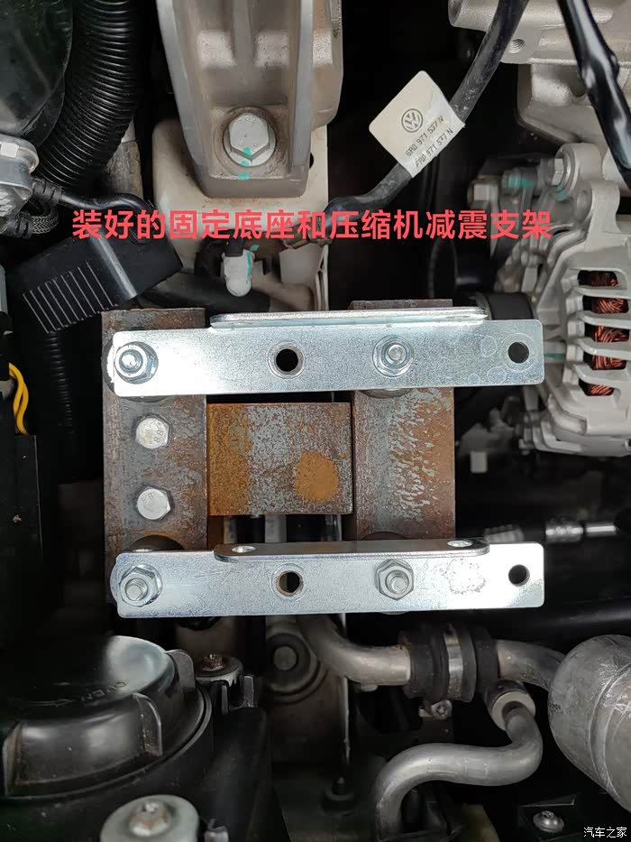 装车完成!电池尺寸比备胎小的多了,刚好完美装在备胎的位置!电池的铁架外壳上自带有4个螺丝孔位,用螺旋栓和车身固定好!