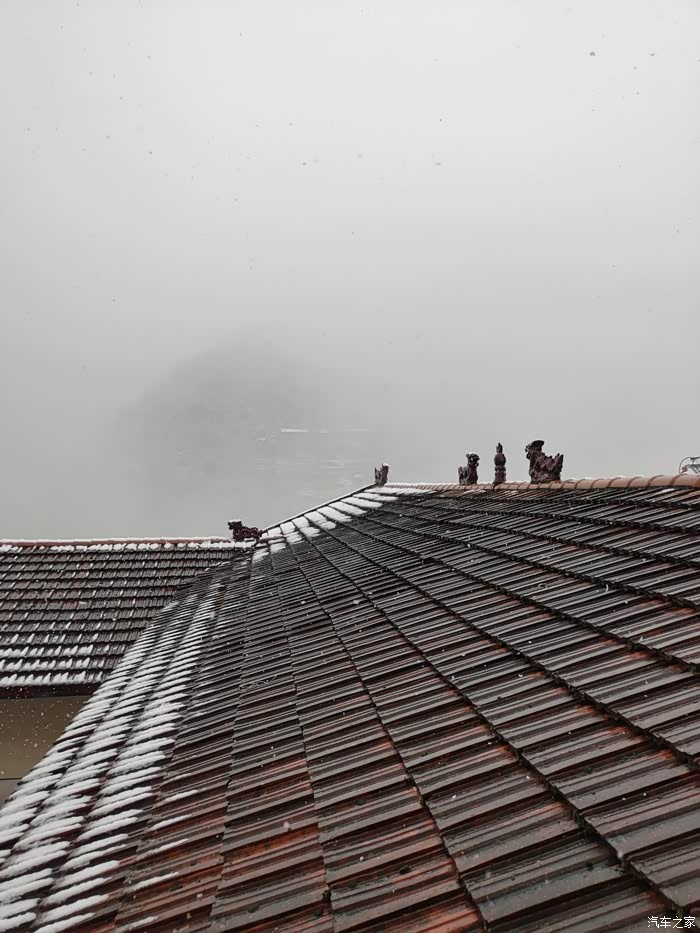 屋顶上存雪了。