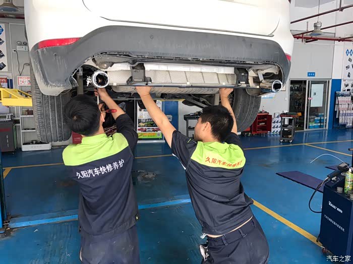 6.双出排气:这个算是提车第一天就决定要改的了,唯一纠结的是改假的还是真的,我们这边冬天很潮湿,排气会经常出烟雾,如果改假的就会一边出一边不出,那太low了,所以决定改真的,而真的也分两种,一种是改尾喉的部分,改成两边出,还有一种是直接换尾鼓,选择了第一种,成本相对较低,且也能达到两边出气,切断原厂尾喉的一段,加上这个上螺丝就可安装,配有双出的后装饰板,而且我开始我想的能从后面看出管子的担心,是多余的,确实看不出来,而且新的那边的高度可调,安装时一定要注意调平以后再紧螺丝,但需要注意的是新的那边出气肯定会相对小一点,但是肯定出气就对了,冬天不再尴尬,另外声音会大一点点,有点声浪的感觉了,看个人喜欢吧。费用1000,安装费100,推荐指数★★★★