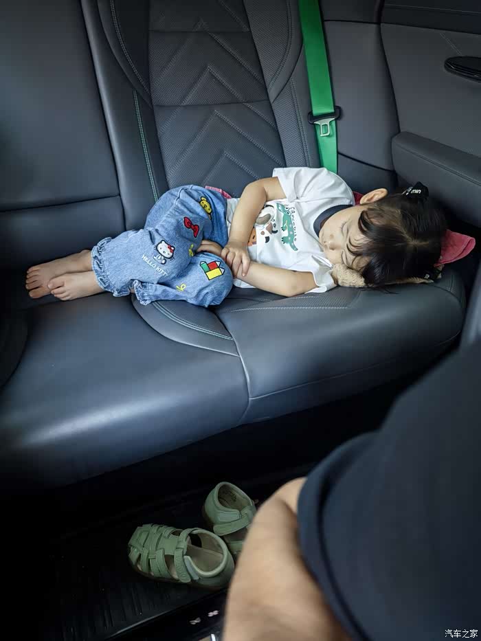 还有个更会享受的,直接把后排当床睡觉了,哈哈哈。车宽的好处这时候就更能体现了,躺着睡更舒服了。