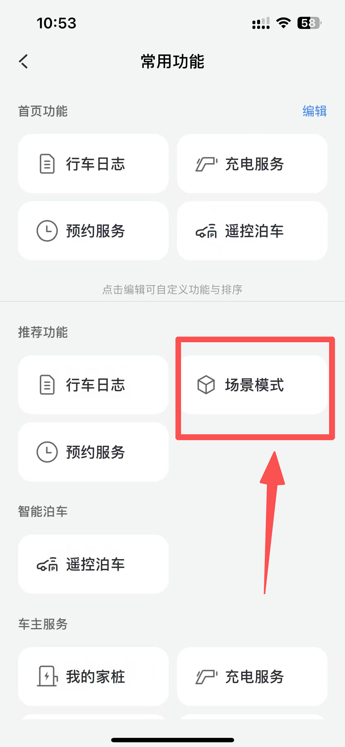 2. 手机端:先打开绑定车辆的吉利银河APP,有快捷键可以直接打开哨兵模式,进入“更多功能”页面找到“场景模式”(图四、图五),在此板块中可找到哨兵模式对应的异常录像视频,进而查看相关录制内容(图六)。