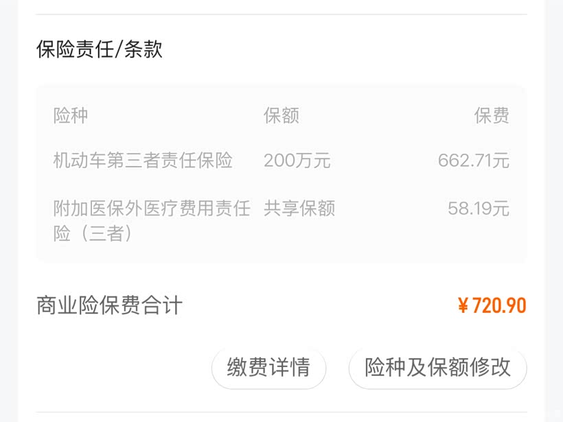 保险费用方面,爱车polo全年交强险和商业险费用分别为665元、720.90元,另外加上车船税360元,合计费用为1745.90元。