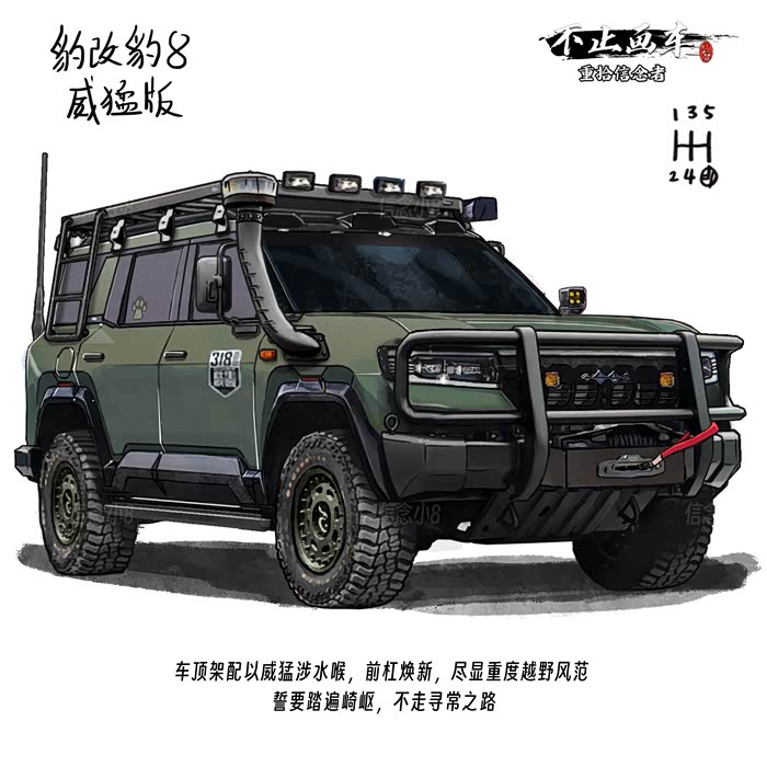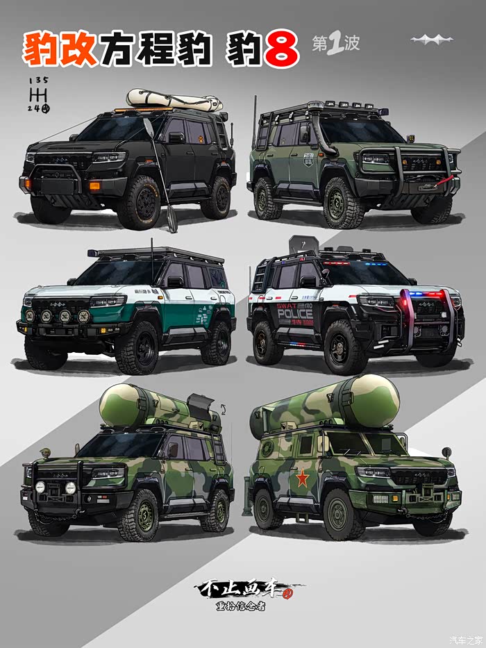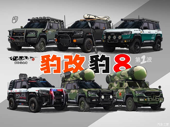 豹8的外观造型,硬派感觉更强烈。这次豹改,我融入了一些生活化的细节,使得整体造型既硬朗又不失温馨。比如宜家黑武士,带上皮艇,享受刷水悠然时光。而,旅行版修改的更加诗意。还有安全感爆棚的,洲际战略青春版,这要是开在路上,无疑会成为众人瞩目的焦点,回头率爆棚!