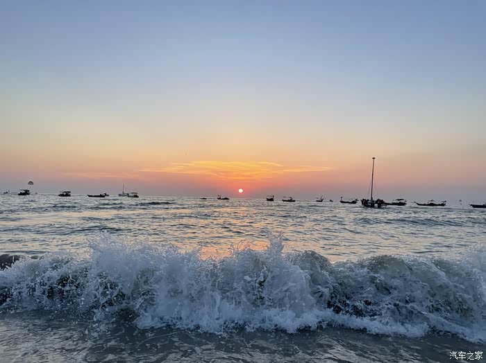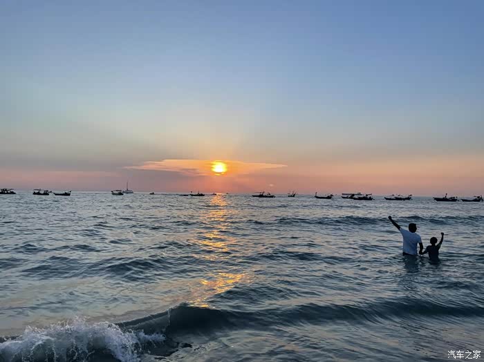 如果大家去涠洲岛,可以租一辆小电摩托,沿着环岛公路一边欣赏日落也可以到五彩滩,那里的角度正好!在一轮金阳下落在海平面相交之处,是海天一色。夕阳洒满了整个沙滩,晚霞也映射在海面上倒影出金色的光芒,这个景象我相信就算再忙的人遇到,也一定会放下手上的事情一起拿出手机记录下这个时刻。