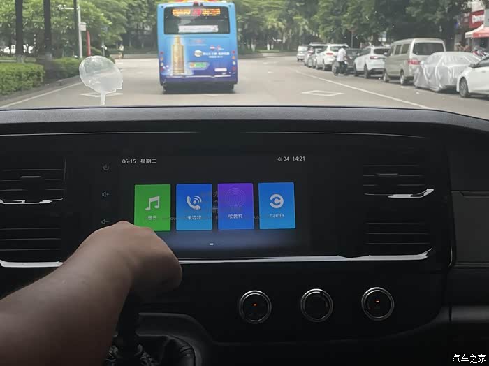 孩子一上车就把蓝牙连接到音乐上了,放的歌我都挺不太懂,不过我也跟着音乐一起摆头,希望可以和孩子的距离更近一些。手里的方向盘转向什么的很流畅,加上中控也在挡位前,调节空调和换音乐啥的都很轻松,大屏清晰度也高,算跟得上时代了。