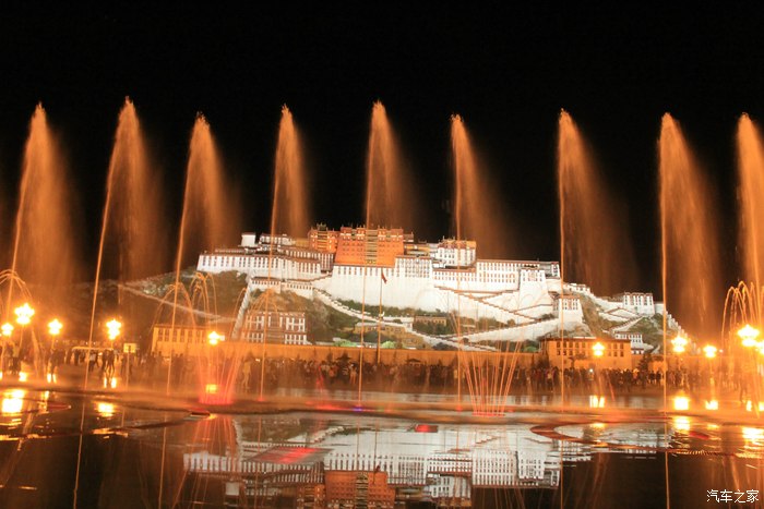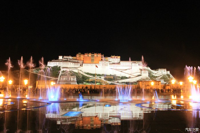 回到宾馆洗漱一番,晚饭后去看了布达拉宫的夜景,晚上9点天刚黑,喷泉真心很漂亮。