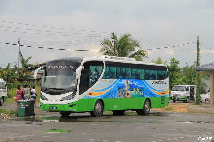 好啦,街景就到这,午饭后1点旅游车准时来到酒店,开启萤火虫长鼻猴之旅。大约2个小时的路程,大巴车装饰的很有热带风格。出城的路是柏油的,很窄没有中心线,在国内应该连县道的等级都算不上吧,应该算没有中心线的乡村道路,限速50还是40公里?但是这大巴飞奔啊。。。这么窄的路这么大的车,开到90-100公里,司机的技术真心好。。。。。