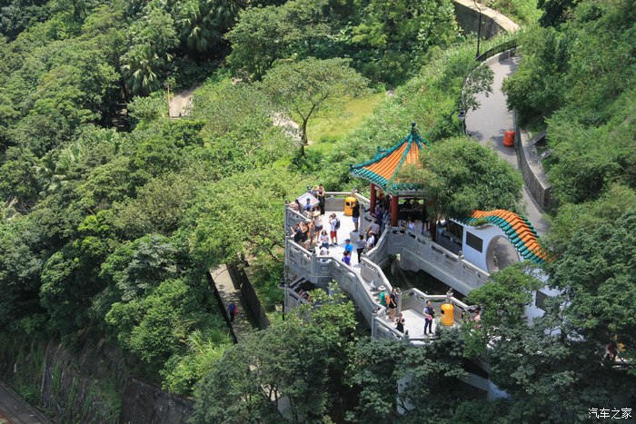 今天起了个大早,因为中午12点要退房,所以太平山顶和蜡像馆要在上午去上午回,从酒店打车来到太平山脚下,很近也就20元港币,提前在淘宝买的通票,拿着票在磁卡机上刷了一下就登上了小火车,这小火车坐的真心挺刺激的,坡度最陡的地方估计有45度吧。下了小火车先刷卡来到太平山顶,风景真美,一览众山小。上面有个投硬币的望远镜,能看到很远的地方很清楚,大家可以尝试一下哈。