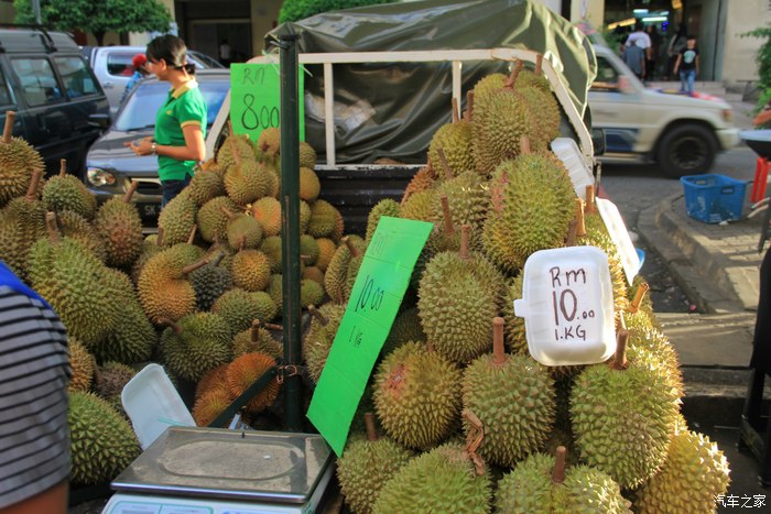 饭后去逛夜市,逛了好久没发现水果摊,结果找人问了下,这里不允许随便摆摊,水果店都在市场里,于是赶去市场,这里的水果有论斤称的也有论堆卖的,反正很便宜啦,唯一不满的是榴莲价格不低,不过人家是正宗猫王山榴莲啦。