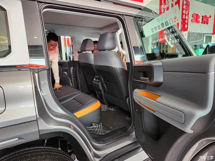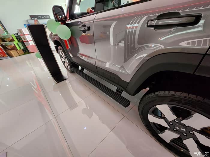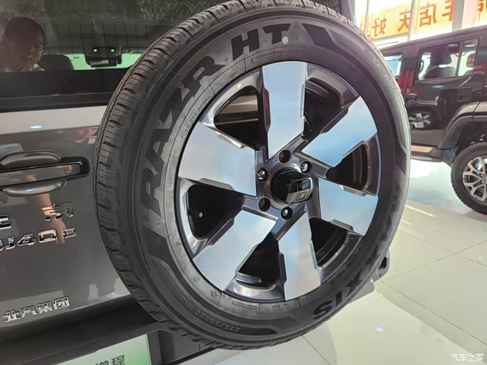 后面这个后挂备胎一看就是越野车,硬派的感觉拉满了,而且这次来店里看车的人还是挺多的,而且基本上都是过来看BJ40增程的,和店里的工作人员约好了时间,下车挑一个人少的工作日再来试驾。