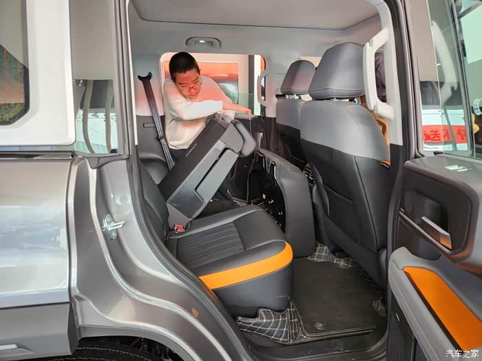 二排纯平放倒感觉相当实用,出去露营的时候可以放平,随时随地能在车里躺着休息。