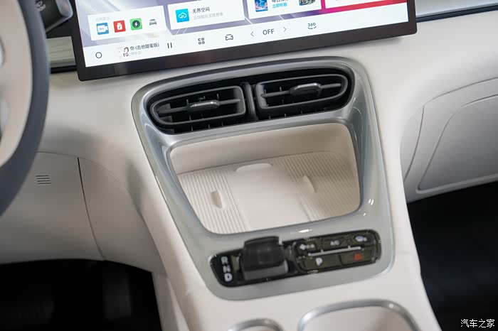 副驾的装饰板,我个人觉得有点设计过度了。干净的一块黑色面板或许更简洁