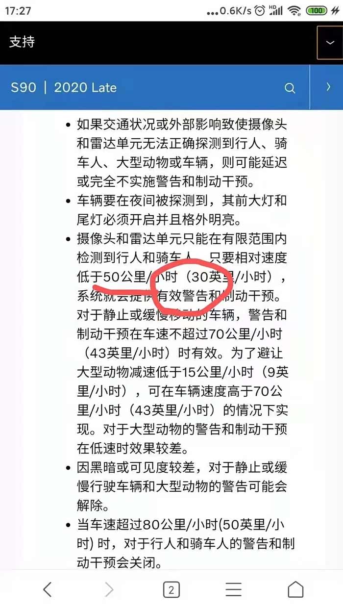 1、本次事故沃尔沃碰撞预警和自动刹车未启动,车子直接100km/h追尾前车;沃尔沃的紧急避让也未启动(第二车道当时没有车子)(备注:之后看行车记录仪的视频,在最后20m左右,碰撞预警和自动刹车有启动,但惯性太大,刹不住;从车主手册了解到,紧急避让需要驾驶员给方向盘一个转向动作,汽车修正方向盘的转向角度来完成);