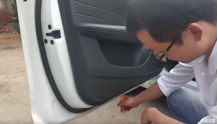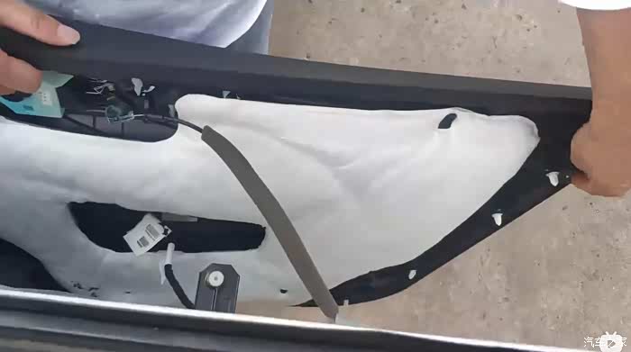 门板都是白色塑料卡扣固定在车门的