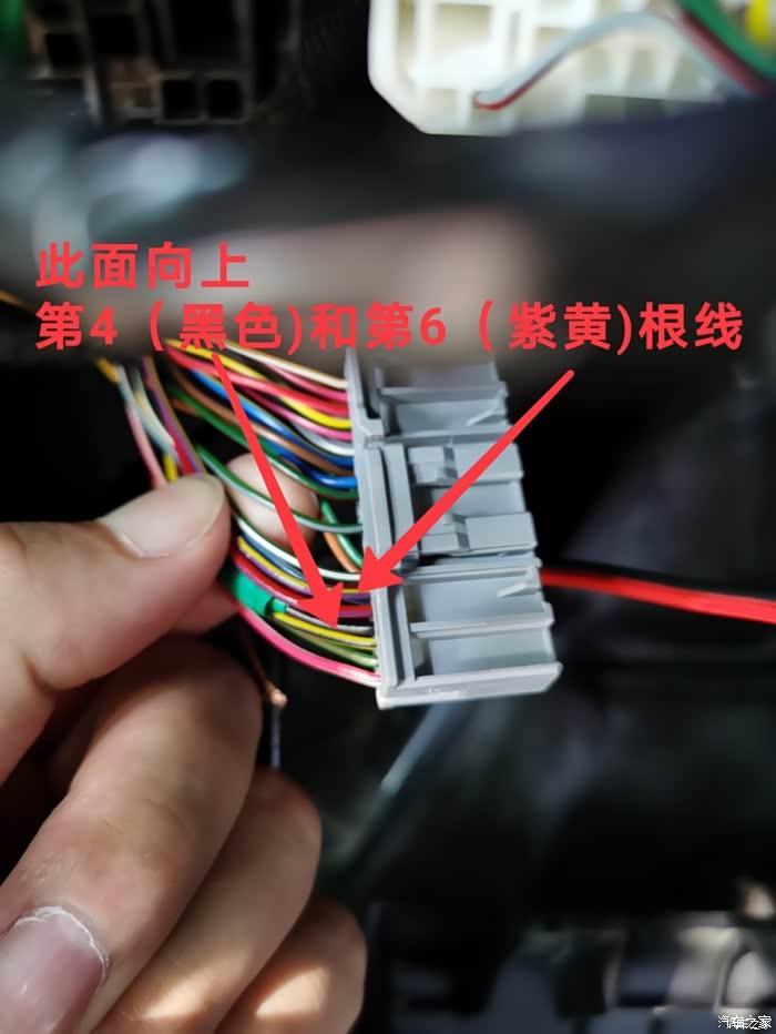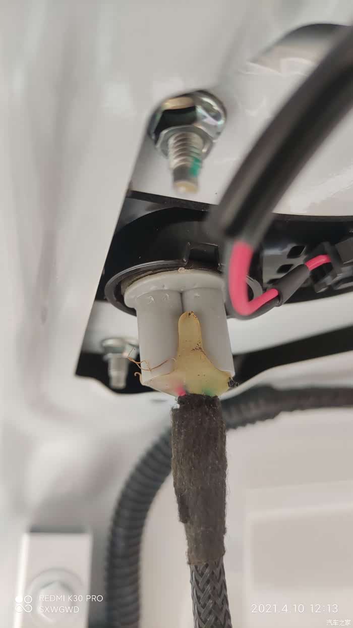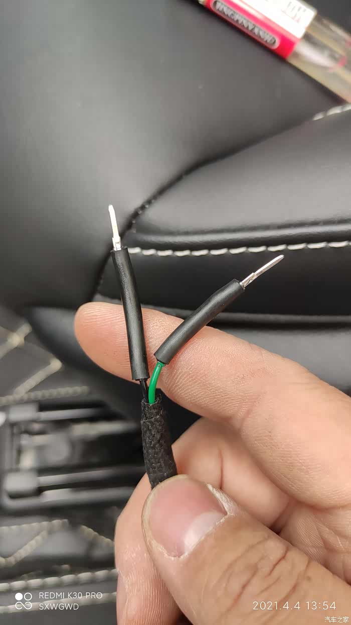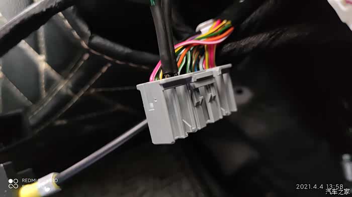 左边倒车灯的电从有便倒车的并联取电,同样我用2pin接头公头的针,直接插进去接触连接,线大概一米左右就行了,可以自己大概量一下再焊接剪裁,电烙铁焊接热缩管包裹,绒布胶带缠绕避免异响