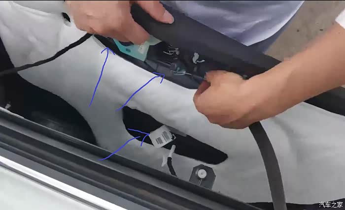 把车窗升降开关线拔掉,开门钢丝拔掉,门锁开关线拔掉