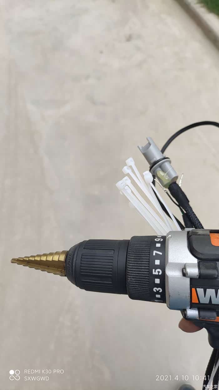 左侧没有灯的地方需要电钻打孔,我用的电动螺丝刀+宝塔钻头,事实证明这个灯罩有两层,宝塔钻头不适用