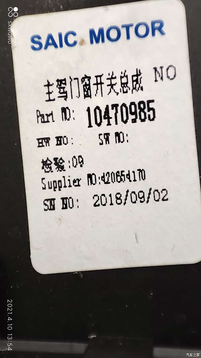 专门去MG4S店看的ZS车窗开关