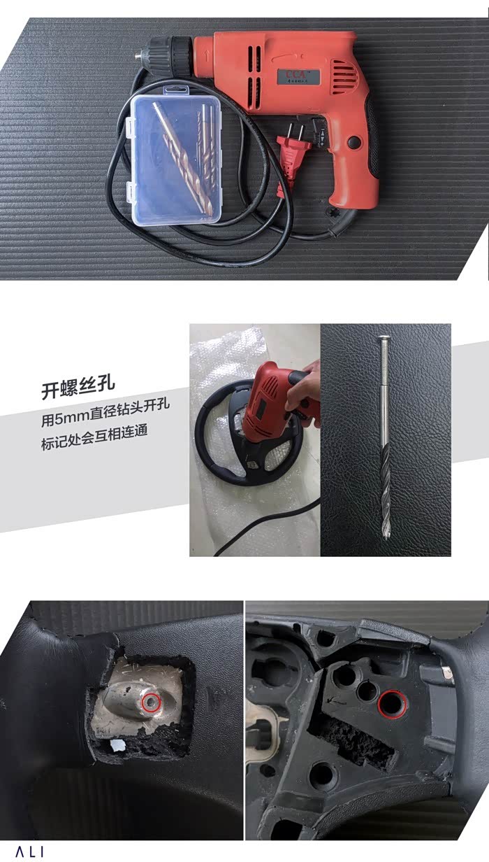 一开始就遇到了让人头疼的问题就是没有安装螺丝的孔,后来科学家潘大友情赞助了一个电钻给我。接着开搞,钻头是5mm直径的(螺丝直径是4mm)。