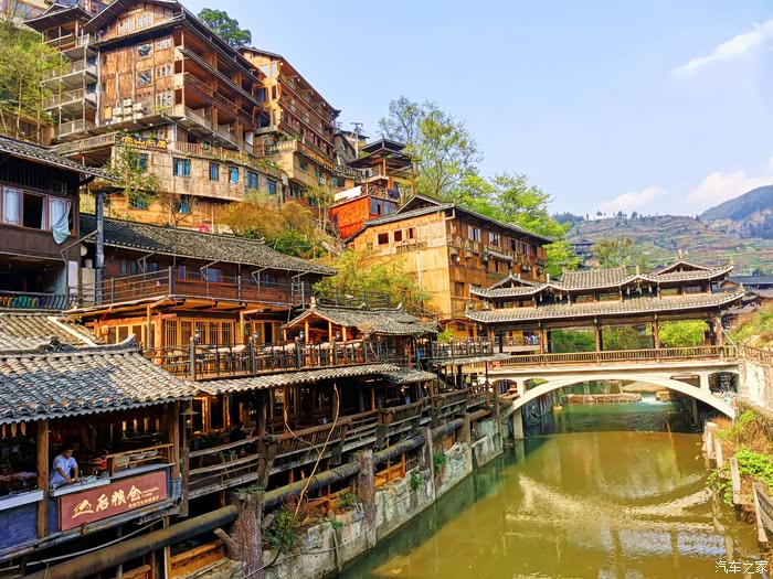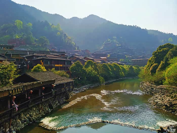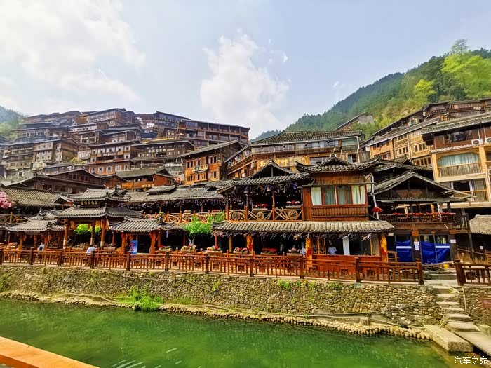 甚好这里面有一条河,有水就要灵气,有水才出美景。如果光是在那人群熙熙攘攘的街道走一遭那还有什么意思呢?所以为了那一条河及沿河的美景来一趟苗寨看看也不亏!
