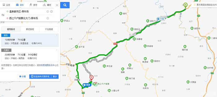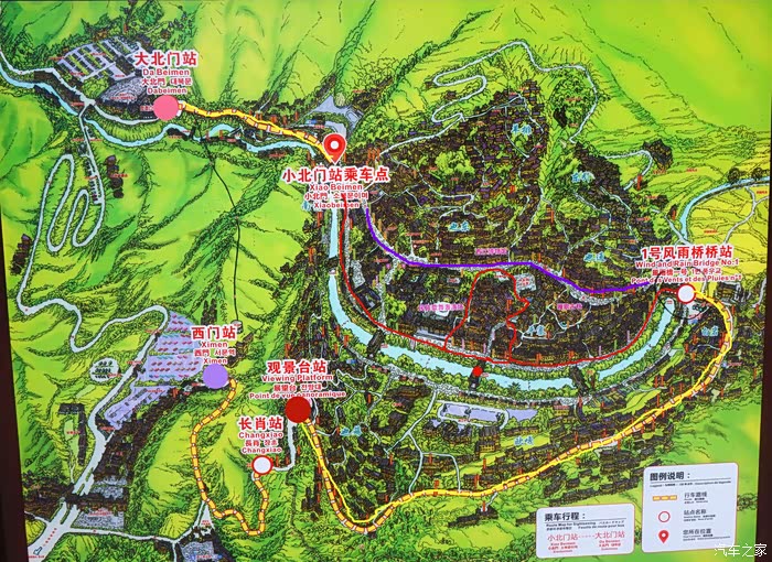 结合上图简单介绍一下苗寨的观光车以及游览路线。