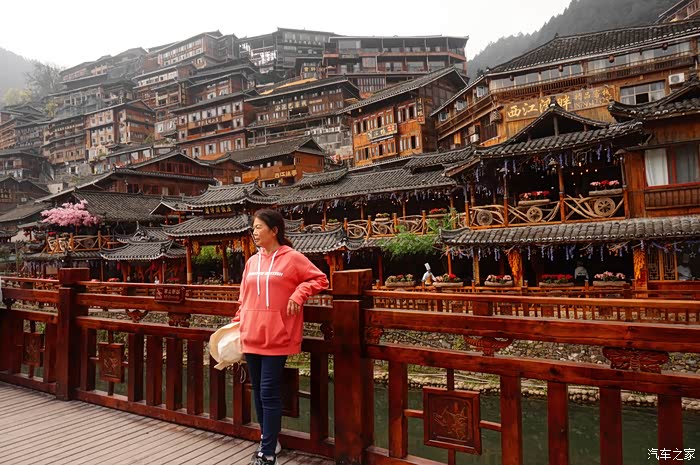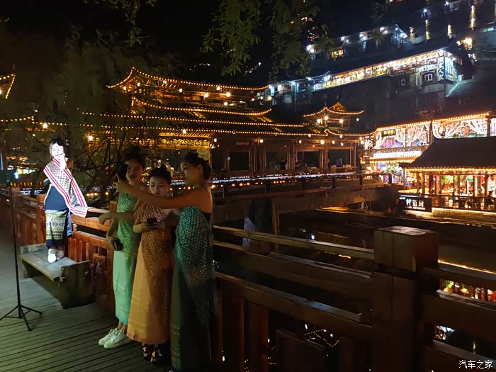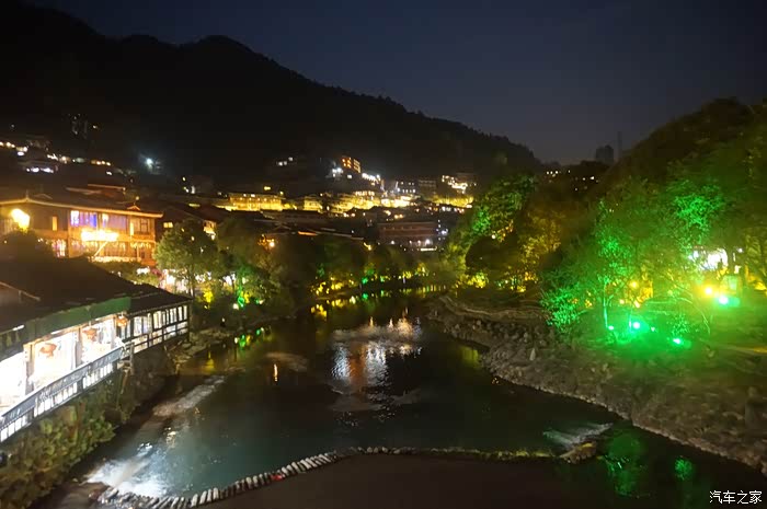 我把我们游览苗寨的行动分为四个部分,一,沿河行。二,看表演。三,西山观景台。四,沿河夜景