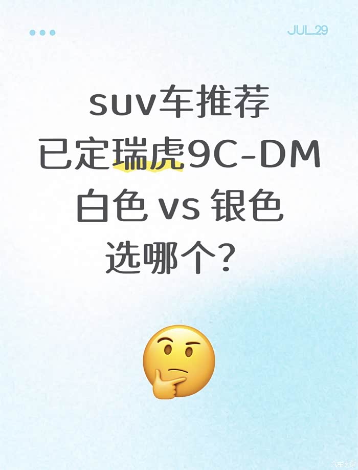 已经定了要买瑞虎9C-DM,但是选啥颜色还没敲定…