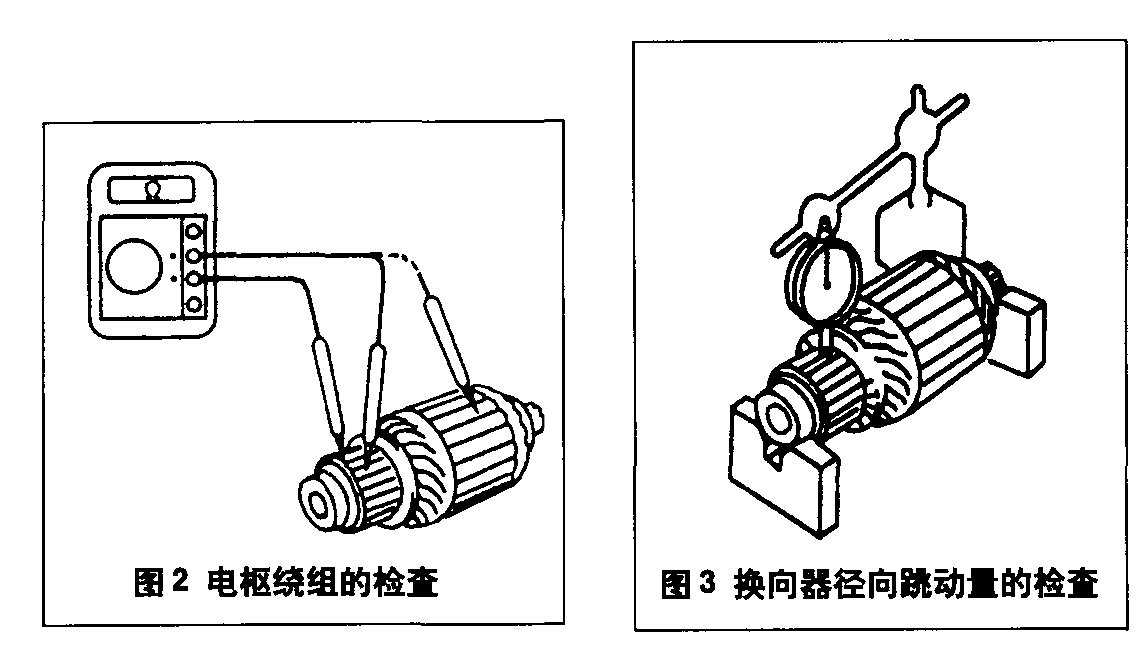 (4)用游卡尺测量换向器直径,标准值为30 mm,小极限值为29mm。否则应更换电枢。