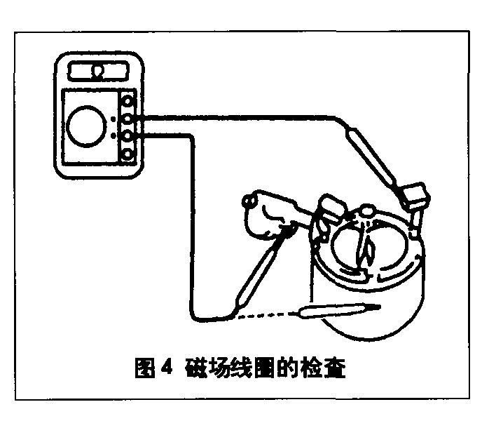 实践表明磁场线圈断路,多因摩擦碰损或线头脱焊所致。此故障有的可目测发现,有的则必须用仪表检查。