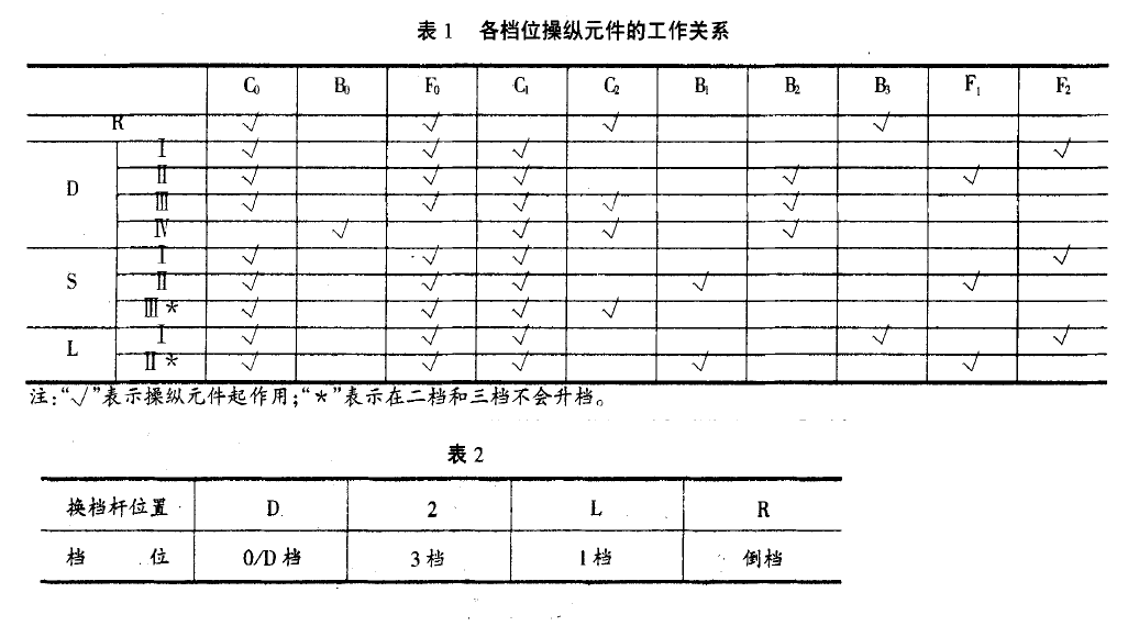 通过充分的行车试验,并参照表1,基本可以判断打滑部位。丰田A340E自动变速器内部打滑故障的判断可以归纳为以下几个方面: