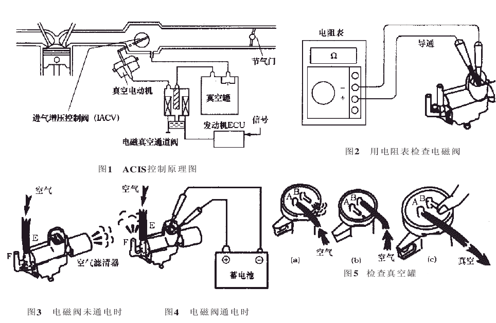 为了彻底排除点火系统故障的可能性,测量分缸高压线的电阻值,正常;测量点火线圈初级绕组、次级绕组的电阻值,也均在技术要求的范围之内。接上真空表,再逐缸断火,各缸在同一工况(发动机转速)下真空度跌落值相差不大,于是排除了个别气缸工作不良的可能性,从中亦可判断喷油器工作基本正常(测量其电阻值为12.5Ω左右)。