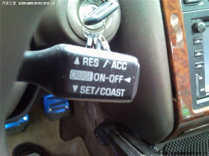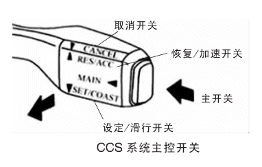 巡航指令组合开关安装在转向柱的操纵杆上,按其规定的标识符号操作,就能调整到理想车速:当车速达到40km/h以上的有效车速时,按下“CRUISE ON-OFF”开关到ON位置时,则接通巡航控制系统仪表盘上巡航指示灯,巡航系统进入准备工作状态,再按“SET/COAST”标记压下巡航操纵杆,然后松开操纵杆就可获得一个定速。若想提高巡航车速,可按“RES/ACC”标记抬起巡航操纵杆,巡航电脑(ECU)就通过执行器增大节气门开度,自动升速,当达到所需车速后,松开巡航操纵杆汽车就以提高后的车速稳定行驶;若想降低巡航车速,可按“SET/COAST”标记压下操纵杆,汽车就自动降速,当降至所需的车速后,松开巡航操纵杆,汽车就以降低后的车速恒速行驶;若想取消巡航控制,可按“CANCEL”标记压下操纵杆或踩制动踏板(或踩离合器踏板)汽车就解除巡航系统控制。
