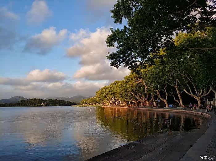 一路上从西湖驾车过来。我趴在窗上睁大了眼睛赞叹「哇!太美了」 「哇!好棒啊!」