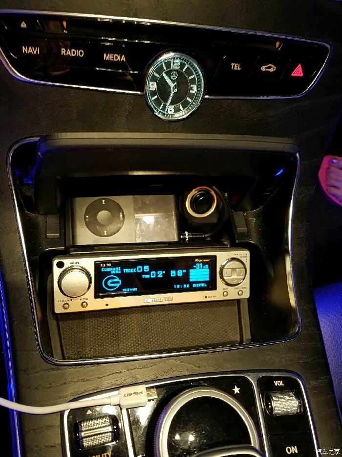 输出方案:先锋P01放CD,IPOD作为AUX音源,原车音源进入先锋P01的收音机信号输出。