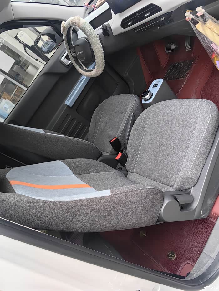 提车的时候内饰是白色的,我就直接装修了一下,买了个座椅套,家里有小孩想着座椅容易脏,