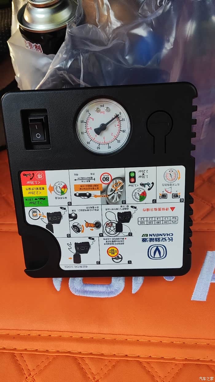 昨晚就发现右后轮胎压有点低,早上起来就从后备箱取出厂家赠送的充气泵给轮胎补点气,操作简便插上扶手箱下面点烟器接口即可启动充气泵,很快就给轮胎补好气了,这东西还是挺方便的。