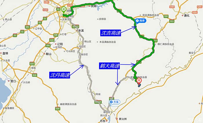 去往小韭菜沟,目前有沈丹和沈吉高速两条路线可走,最后都要江入鹤大高速,总路程差不多,都在360公里左右。
