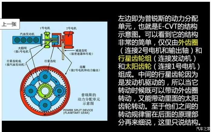 如果用传统变速器的眼光来看的话,E-CVT的结构真的实在是太简单了。很多时候其实越是完美的东西越简单,我想这一定是真理。作为混动汽车的代表作,普锐斯一直承载着丰田的核心混动技术,那么接下来的解析就以丰田普锐斯为例。