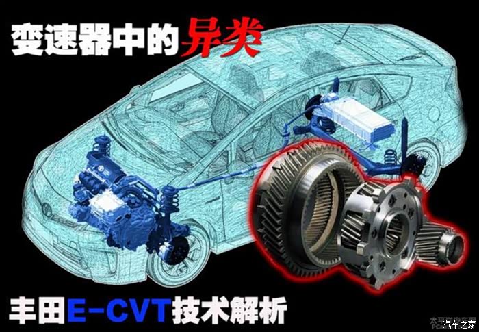 开篇我们就提到过E-CVT并不是简单的“电控无级变速器”,所以当然也不是网上流传的它是CVT的电子版。丰田官方给出的定义是“动力分配器”,因为它并不具备传统变速箱系统里面的离合器、液力变矩器或是齿轮轴组等这些复杂机构,是专门为混动车型而准备的动力分配机构。故一直存在一种争论:E-CVT到底是不是变速器?