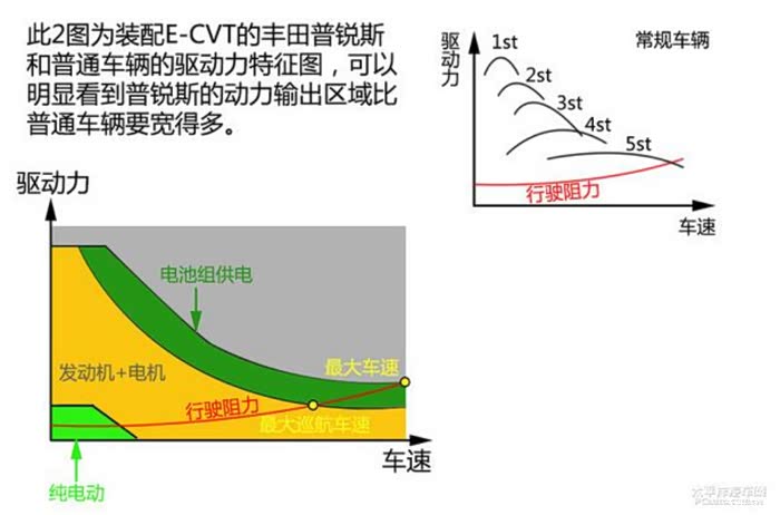 下面从普锐斯的各个运行工况来逐一分析E-CVT的变速过程: