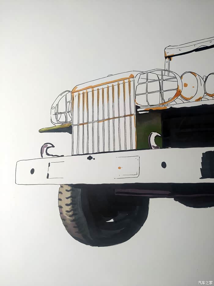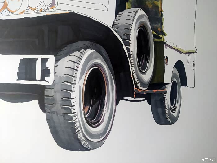 好好画一下轮胎,吉普车的轮胎,纹理很清晰,这是它的特点。