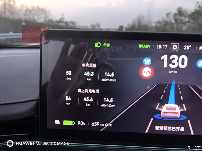 续航方面,从武汉回到襄阳,夜间行驶灯光、空调、座椅加热按摩全开,加上三个大汉,城区行驶45公里,仅仅14.5的电耗;高速以130公里/小时定速巡航两百多公里,电耗也才18左右;,另外使用快充时30min便从20%充到85%的电量,非常符合我的预期。日常通勤能够提供稳定的续航支持,让我无需担心电量不足的问题,这样的表现无疑在同级别车型中脱颖而出。