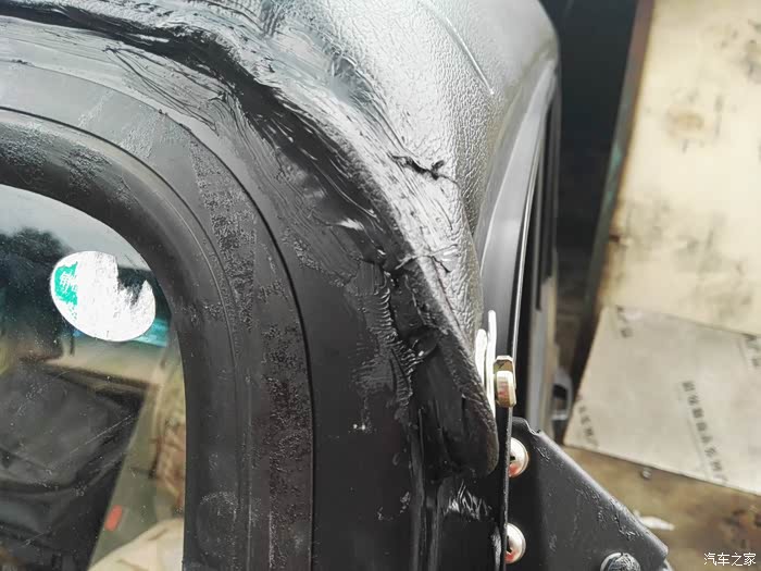 挡风玻璃里面打黑色玻璃胶,没有拍照片,因为外观上和打胶前没有区别。一块玻璃打两圈,密封圈玻璃一侧打一圈儿,外侧车体接触部分打一圈。