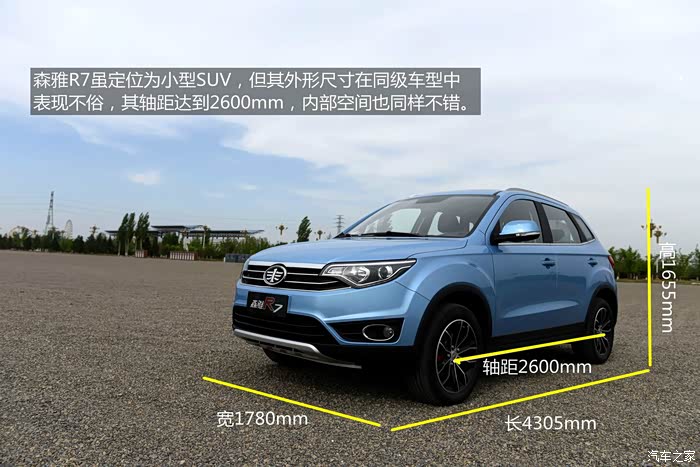 正是在这样的大背景下,一汽吉林在2016年4月27日上市了森雅R7这款小型SUV车型。刚刚上市的四款车型均采用1.6升自然吸气发动机,五速手动变速箱。未来有望搭载6速手自一体变速器以及涡轮增压发动机,到时森雅R7的产品结构将更加完善,产品种类也更加丰富,来满足不同的消费需求。