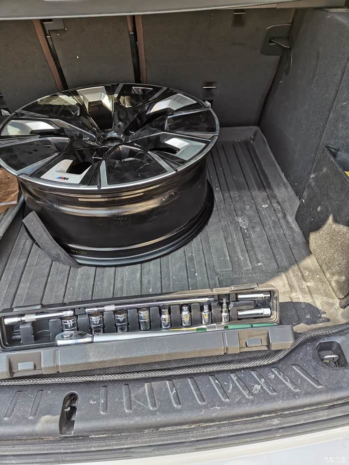 今早轮胎店打电话,说停门口耽误人家做生意了,起床穿衣服过去换胎,顺便问他有没有扭力扳手,回复没有,自己带吧,宝马轮毂螺丝扭力120牛米。备胎昨晚已经提前装车上了。备胎扒下来,车上轮胎轮毂卸下来,轮胎扒下来,备胎装车,动平衡,一共五十,洗车四十,一次都办了,不白来。因为宝马胎压检测气嘴专用的,拆下来要换那个头,轮胎店没有,所以只能接着用擦伤的轮毂,看看伤的也不严重,继续用吧,因为之前收的轮胎是优科豪马,我车上是普利司通,后续还要再换一次,到时候再说。