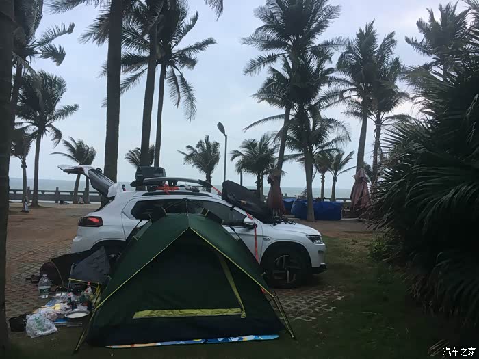 自驾三亚的想法也是无意中生出来的,记得去年国庆节自驾丝绸之路的旅行中,当我们开车穿越海拔四千多米的当金山口时,当时气温零下十度,我问老婆和儿子此时最想在哪里,老婆说想躺在柔软的沙滩上晒太阳,儿子说想不限量的吃最爱吃的大螃蟹,于是便有了三亚之行的最初构想。三亚太美所以去的人特多,尤其春节,北方躲避寒冷的人们都不约而同地奔向三亚,这也导致了三亚的住宿、吃饭、景点门票、旅游项目等涨到了我们无法承受的价格,一间小小的民宿房间都能飙到1500多一晚的价格实在离谱,但仍有不少人找不到地方住。当地饭店吃海鲜更是土豪们的专利,不过这一切跟我们没有任何关系,因为我策划的是旅行而不是旅游,我要的是这样一种场景:高高的椰树林里支起一顶野营帐篷,帐篷里野营灯发出微弱的光,吹着徐徐的海风,听着大海的波涛入睡,清晨醒来围着海边小跑,渴了摘下树上新鲜的椰子,饿了就地野炊,这样的旅行才会更有意义,五星级酒店的住宿条件都不换。在海南的四晚除了在琼海市住了一晚酒店,其他三晚全部露营,两晚住在三亚的三亚湾,一晚住在海口的假日阳光海滩,每次的露营和吃饭是我们最尴尬的时刻,因为我们要面对一次次的围观和拍照,很多豪华酒店的住客们都对我们的旅行非常羡慕,他们说这才是真正意义的旅行,一起露营的“辽A”坦途大哥对我儿子说“小子,一定要记住今天的日子,在你人生中具有重要意义的一天。”实践证明海南露营非常可行。