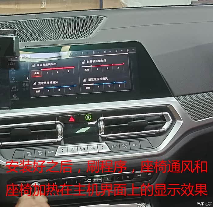 有点麻烦,我是在原厂选装加热的基础上增加的通风,通过原厂加热按键打开。