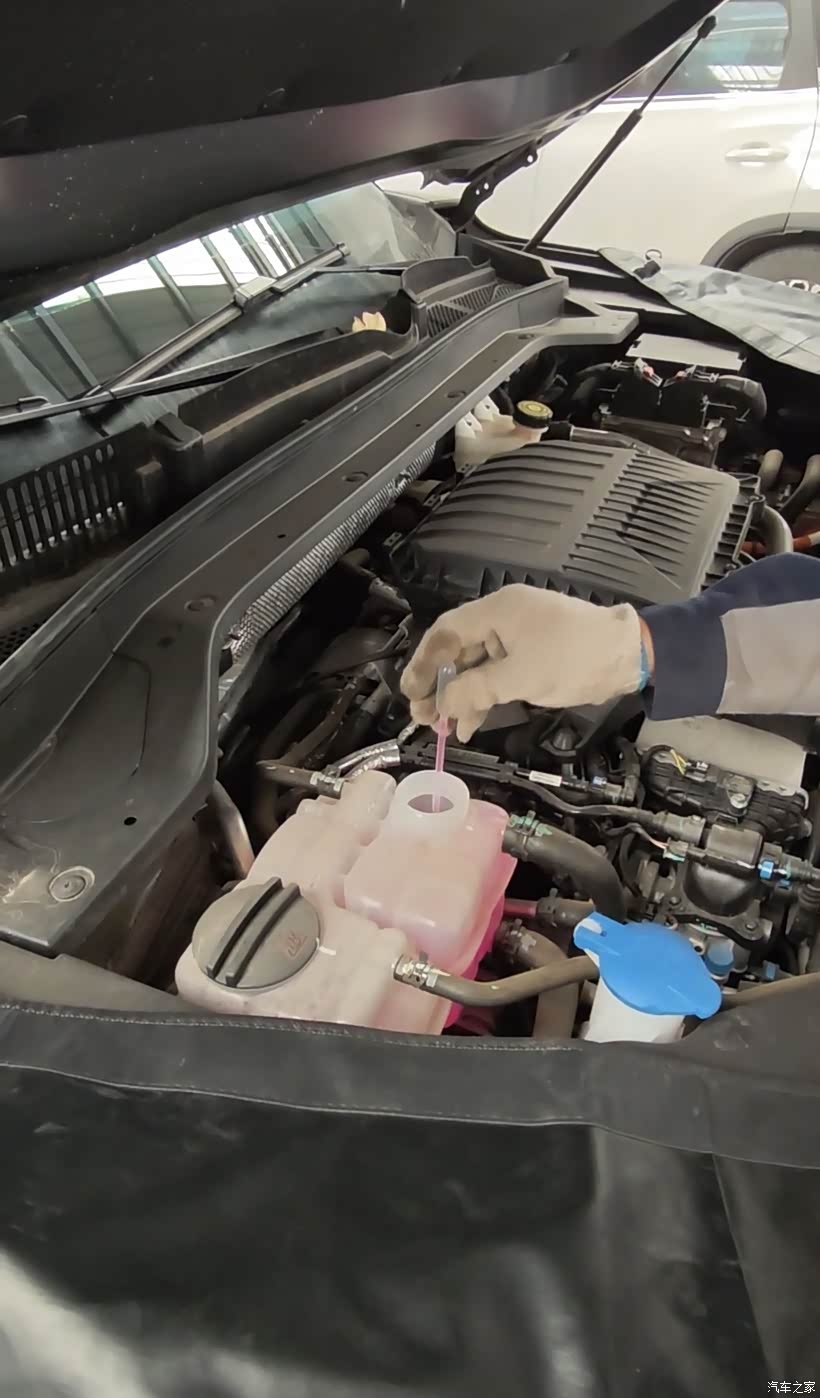 到制动系统的刹车片、刹车油液位,再到发动机舱内的冷却液、玻璃水,每一个关键部位都没放过。