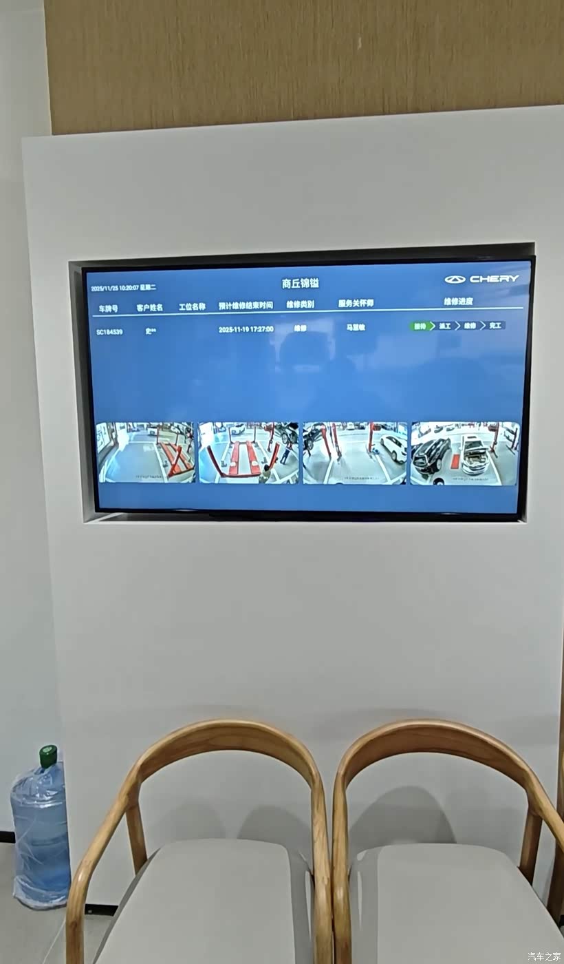 令我惊喜的是,售后中心还设置了专门的休息区,墙上的显示屏实时播放着车辆维修进度,不用来回打听就能清楚知道爱车的状态。