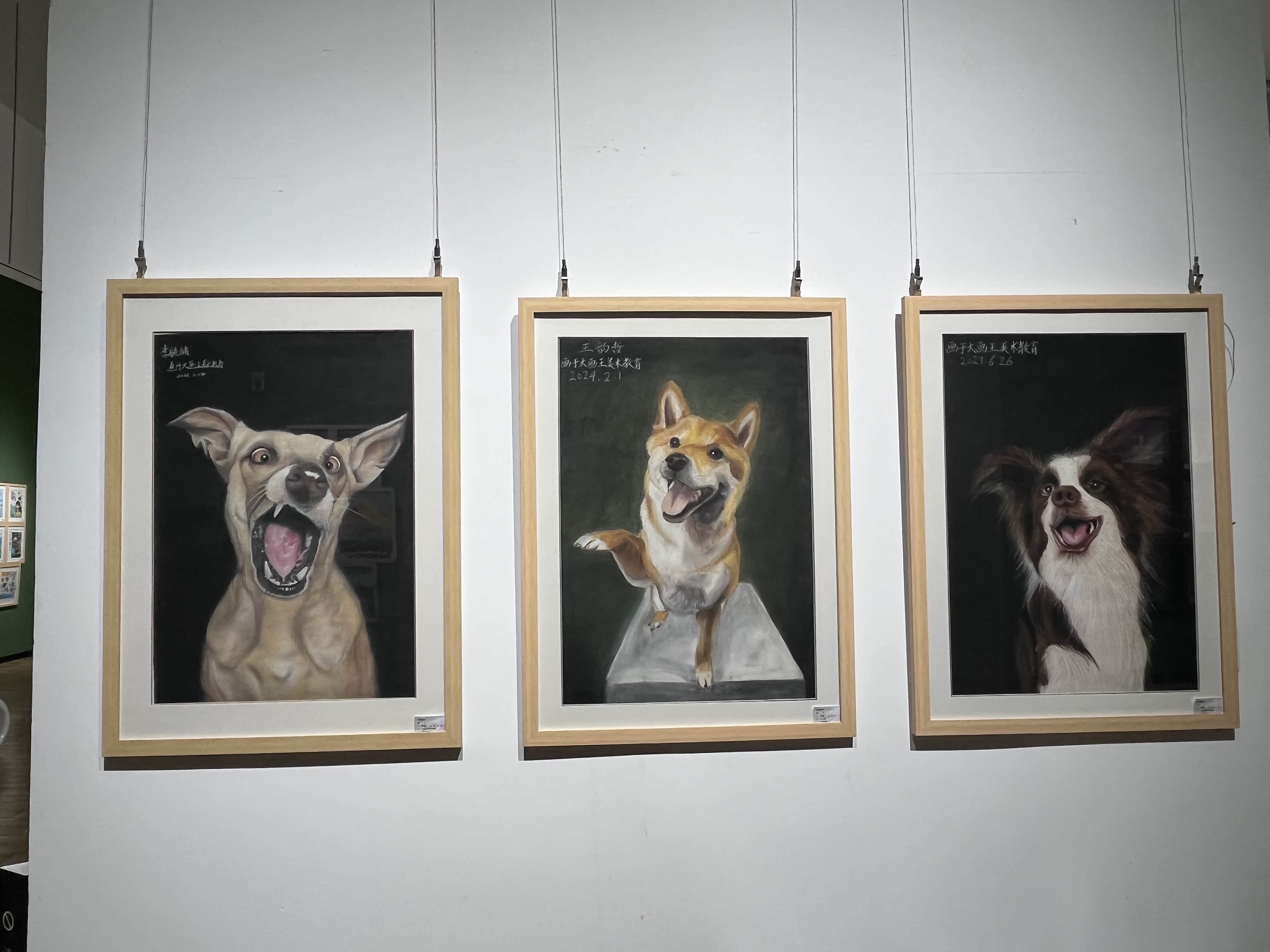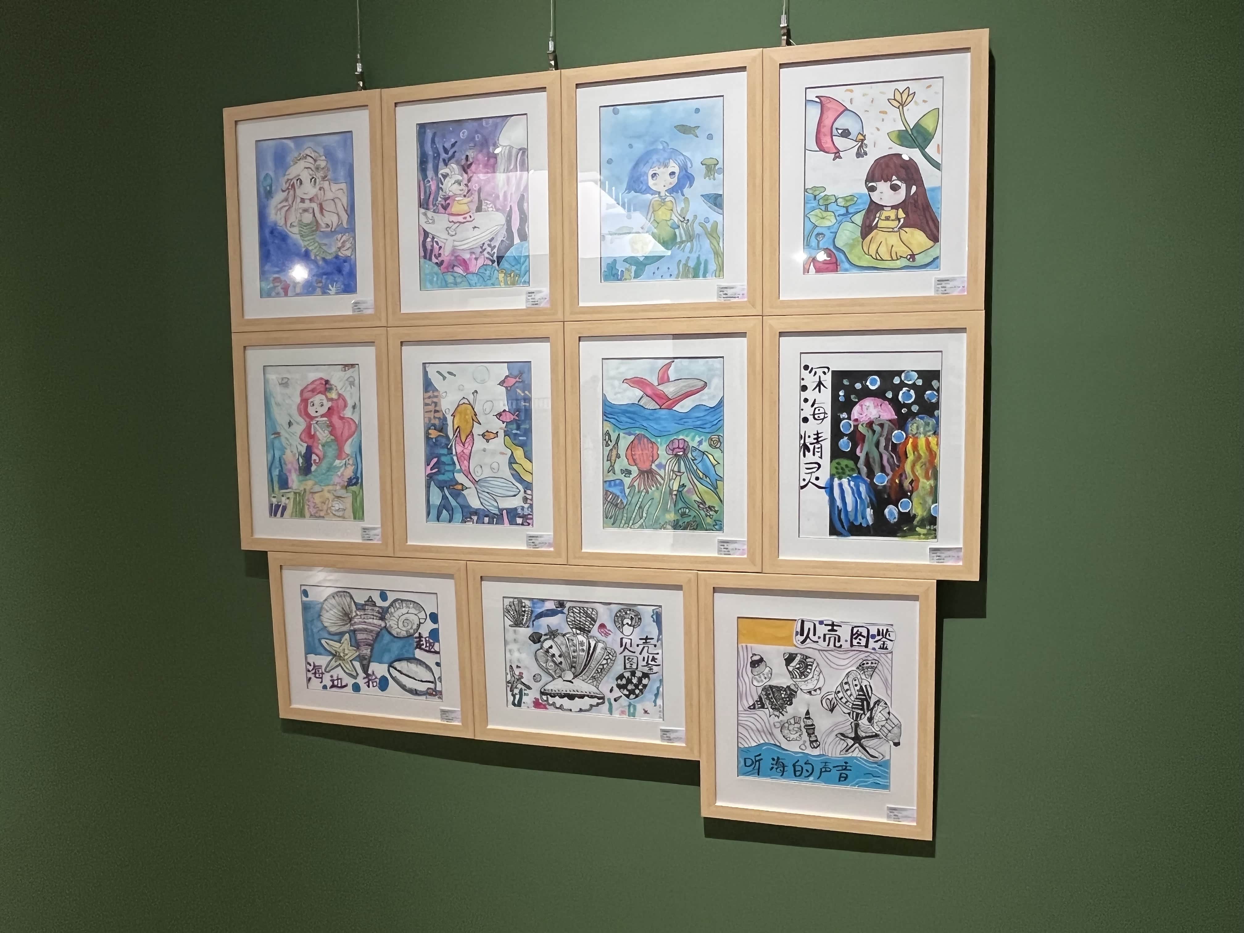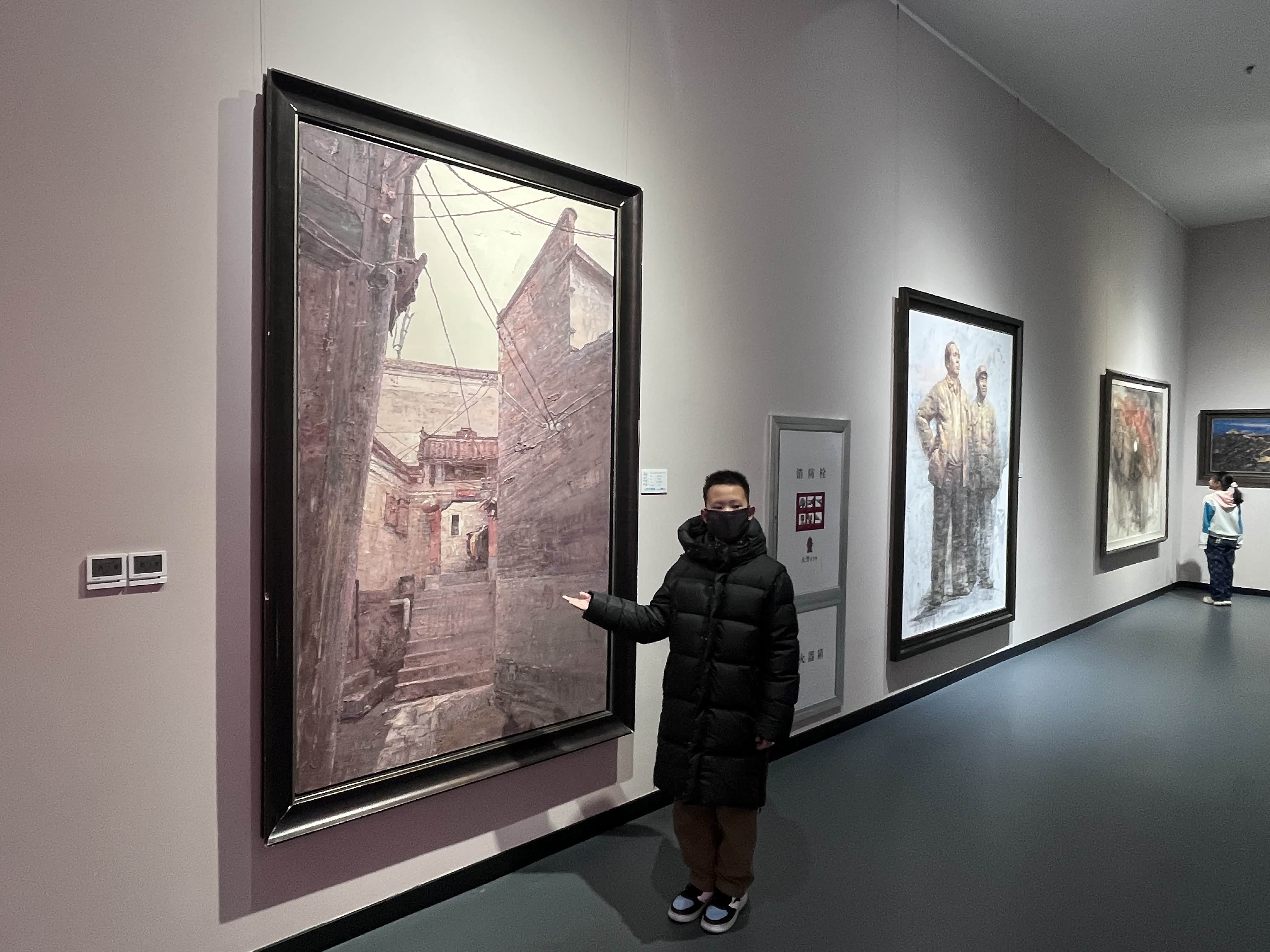 还有一部分展区是可爱的小朋友们的美术展区,一幅幅作品稚嫩又鲜活,有的画小动物、有的画家乡风景,还有的画日常小趣事,不少画面都勾起了我的童年回忆,连儿子都看得目不转睛,还跟我分享他眼里的画里世界,氛围感直接拉满!